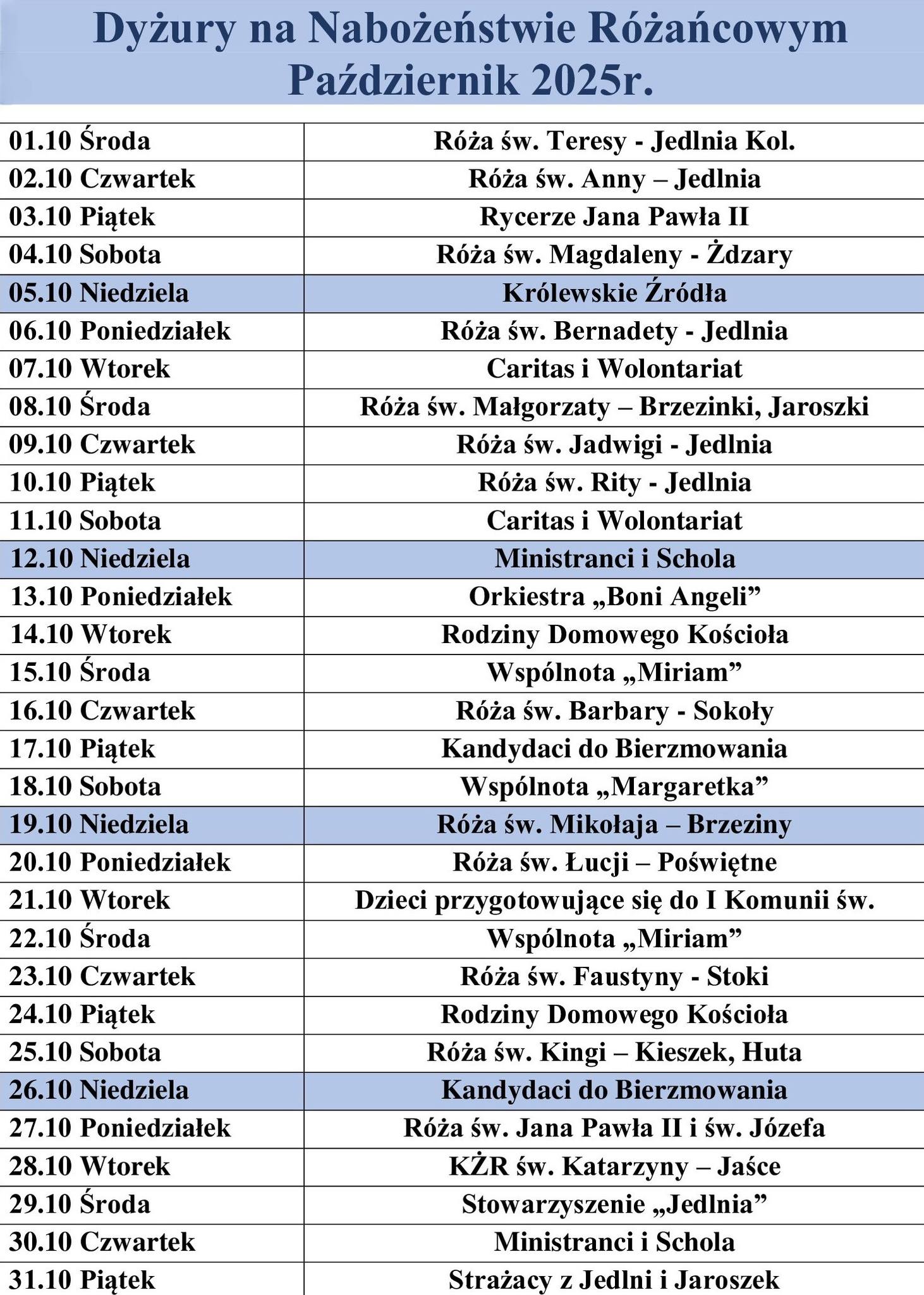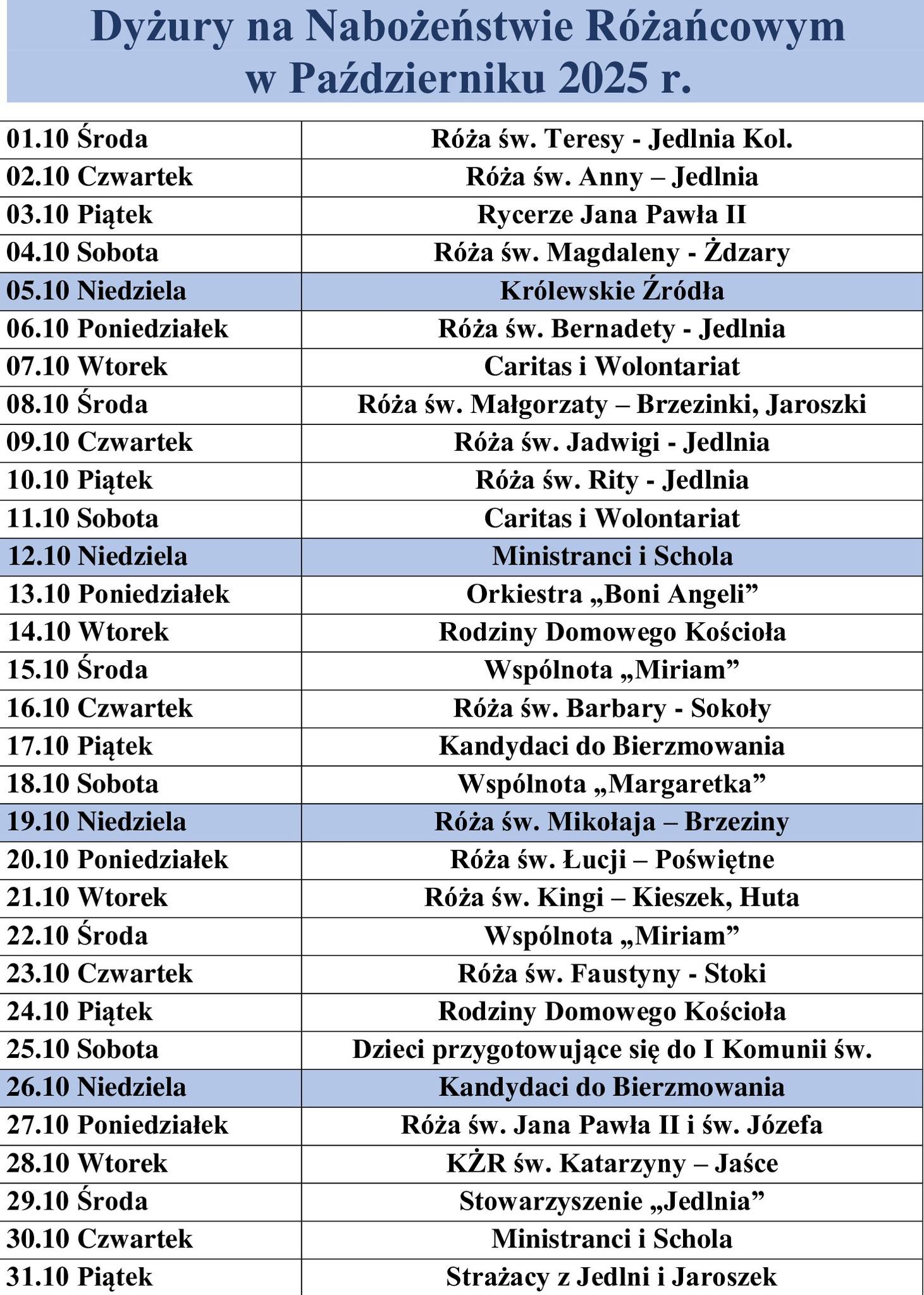 Zachęcamy również do zapoznania się z grafikiem prowadzenia modlitwy przez poszczególne wspólnoty i grupy parafialne